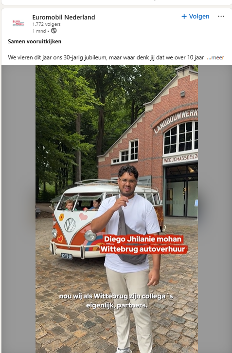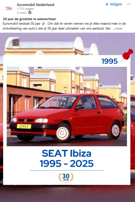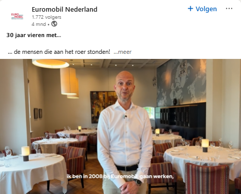 Bij Euromobil vertaalden we dat naar bewuste variatie in contentvormen, in plaats van alleen productnieuws en toelichting van diensten. Rond bijvoorbeeld het jubileumjaar is vooraf gekozen voor verschillende middelen om dit moment te laden.