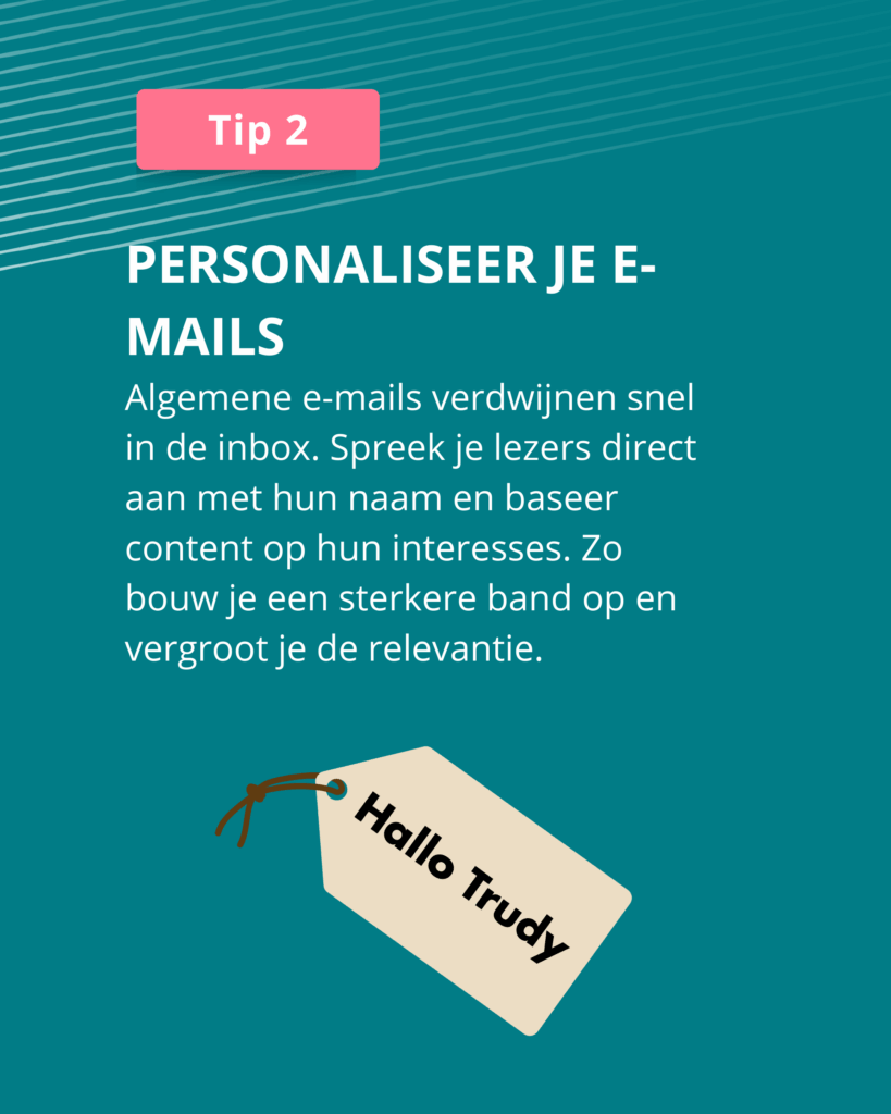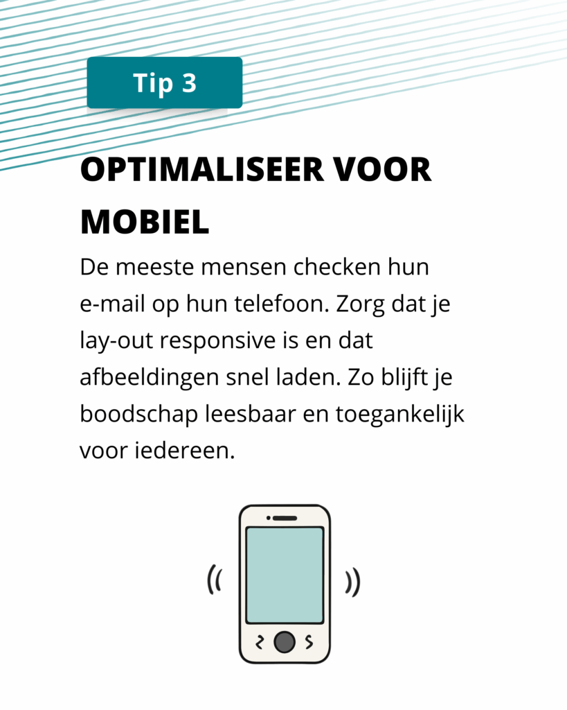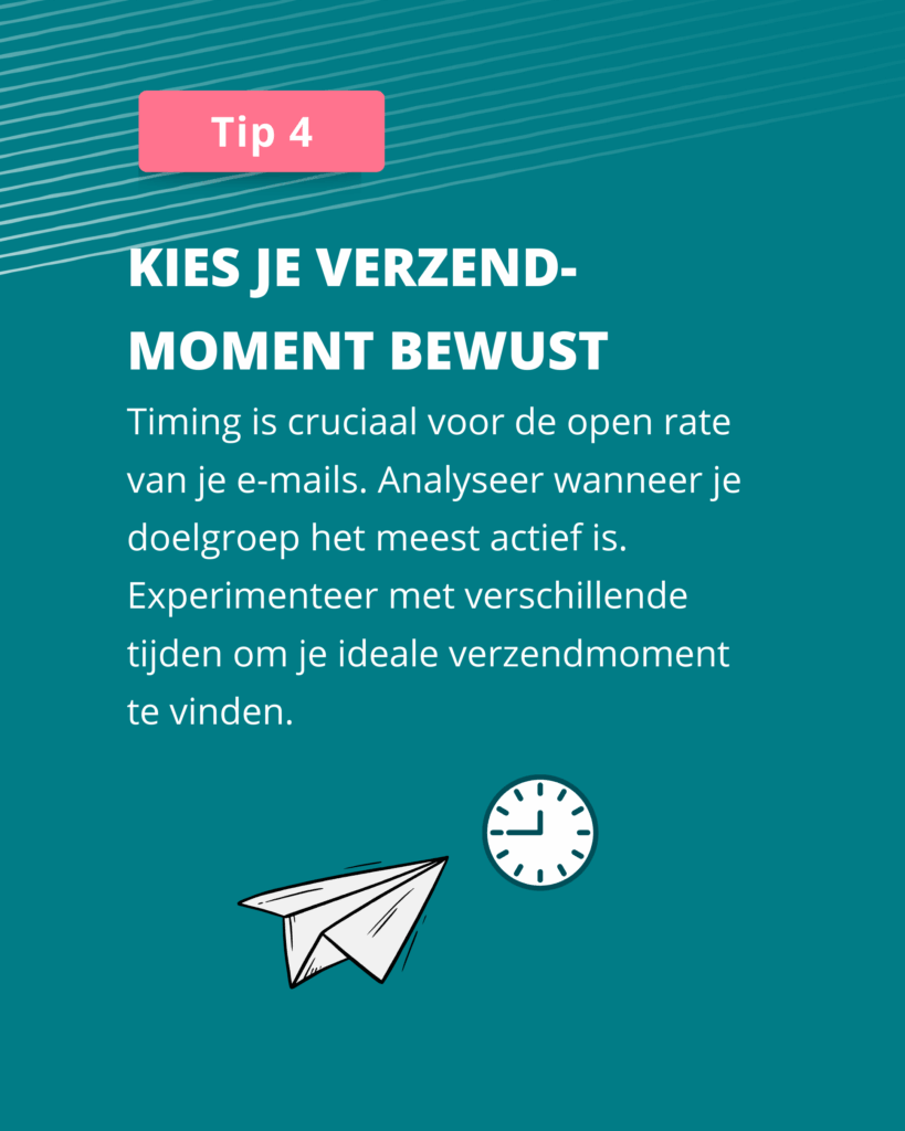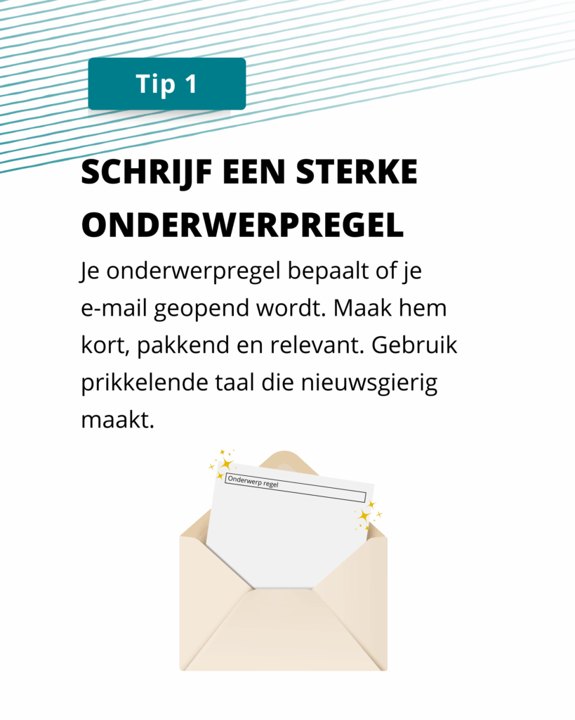 In deze carrousel delen we 5 praktische tips die je direct kunt toepassen. Van een sterke onderwerpregel tot het juiste verzendmoment, allemaal kleine optimalisaties met grote impact.